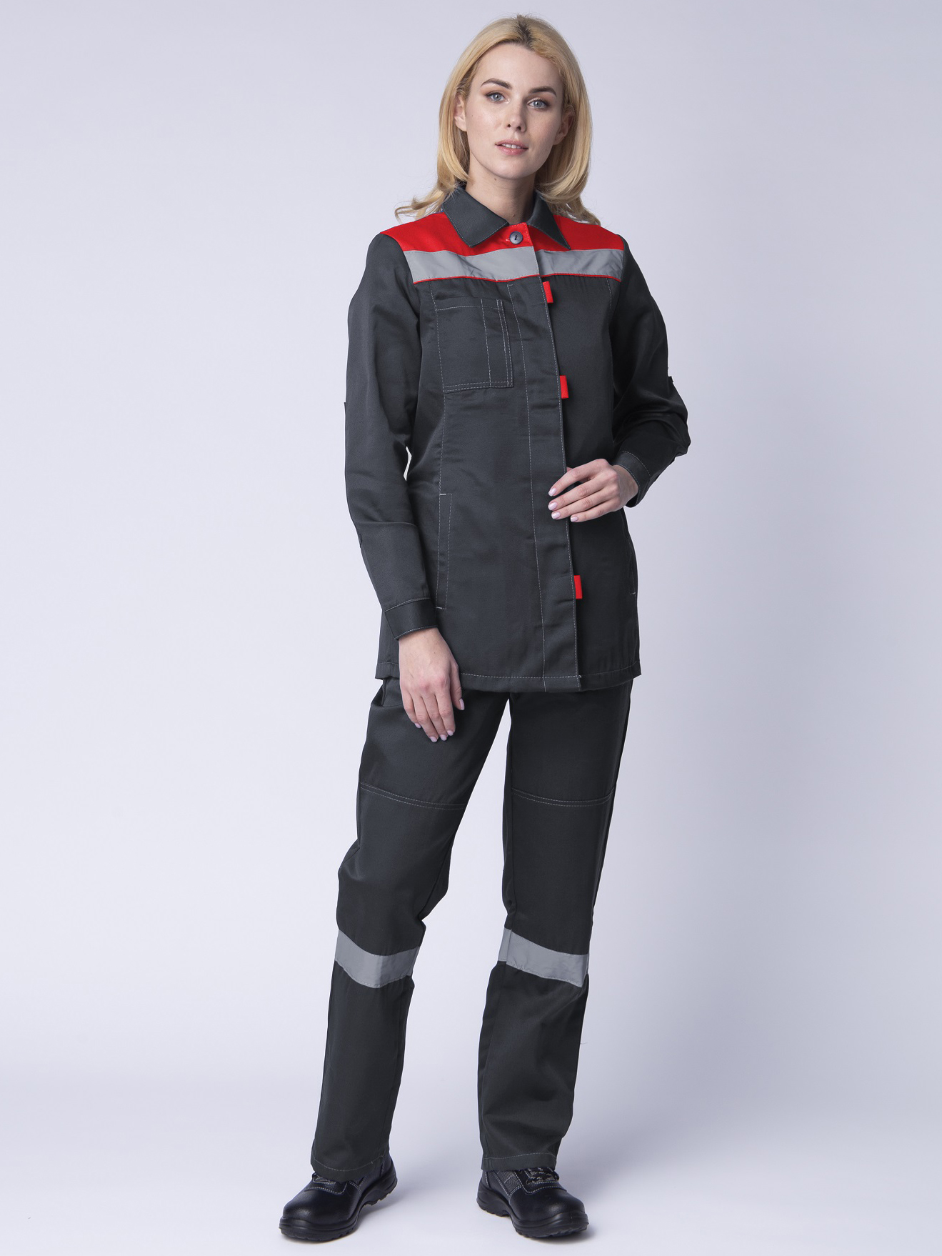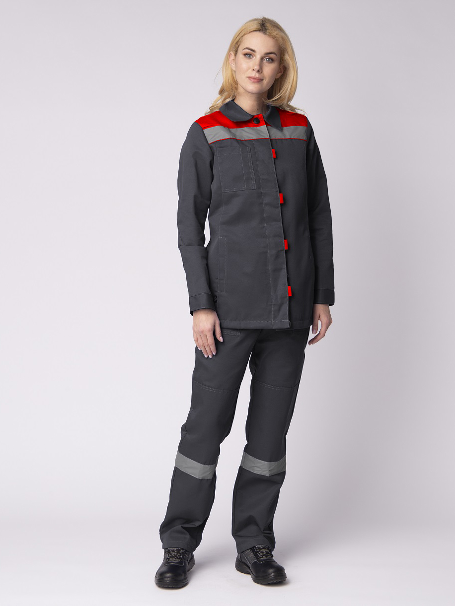 Костюм женский Веснис-1 СОП К. (тк.Смесовая,210) брюки, т.серый/красный