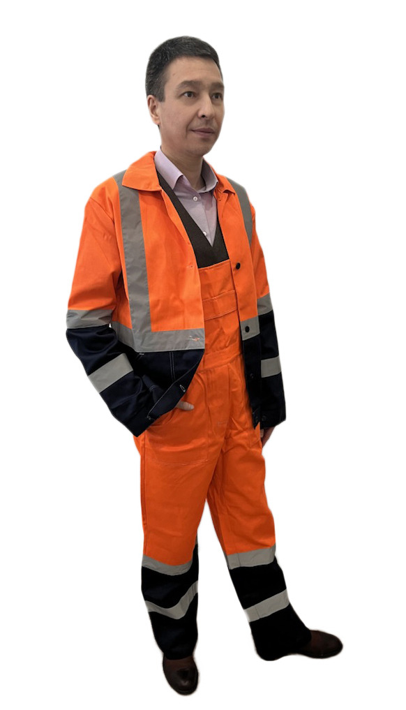 Костюм дорожник Сигнал-2 (тк. Балтекс, 210) п/к оранжевый/т.синий полукомбинезон